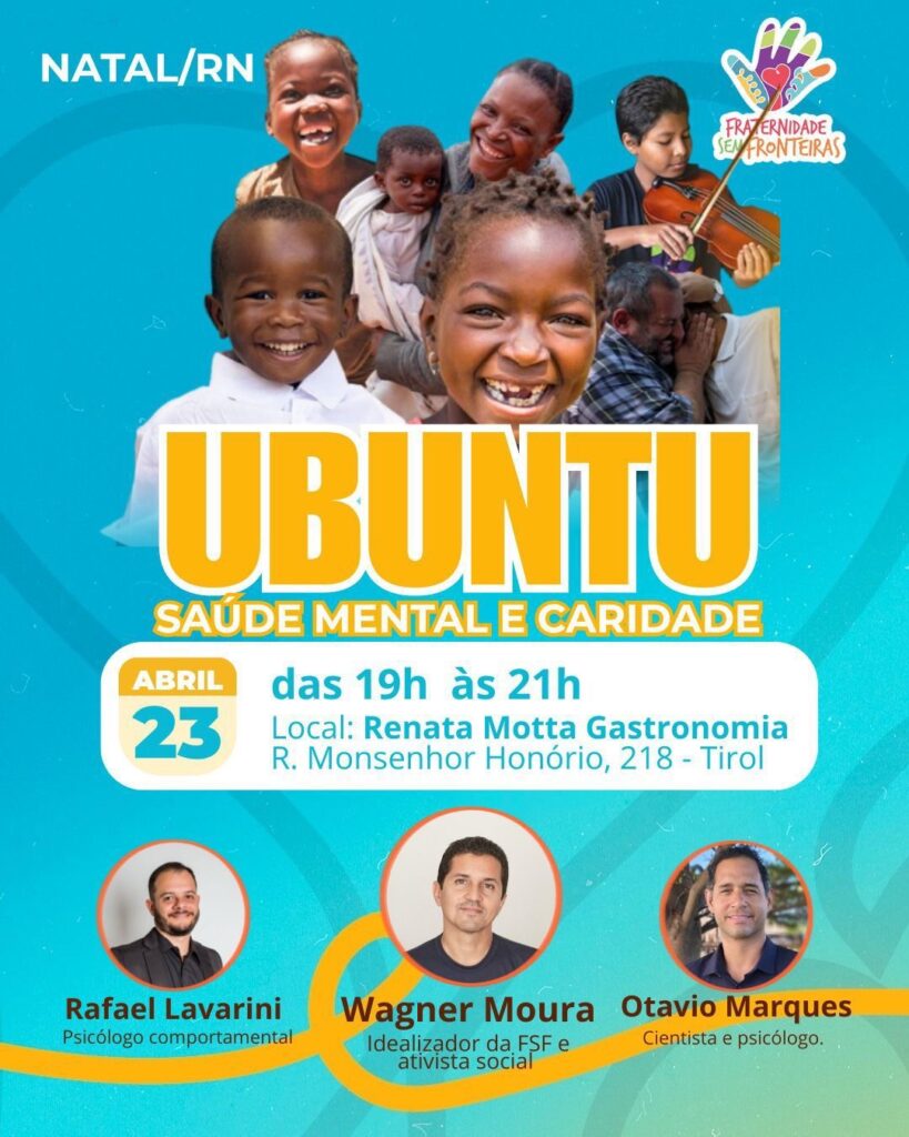O Fraternidade Sem Fronteiras promove, no próximo dia 23 de abril, o evento “Ubuntu – Saúde Mental e Caridade”, reunindo convidados especiais para debater temas como pertencimento, altruísmo e bem-estar emocional. A iniciativa busca incentivar reflexões sobre o papel da solidariedade na construção de uma sociedade mais empática e consciente.